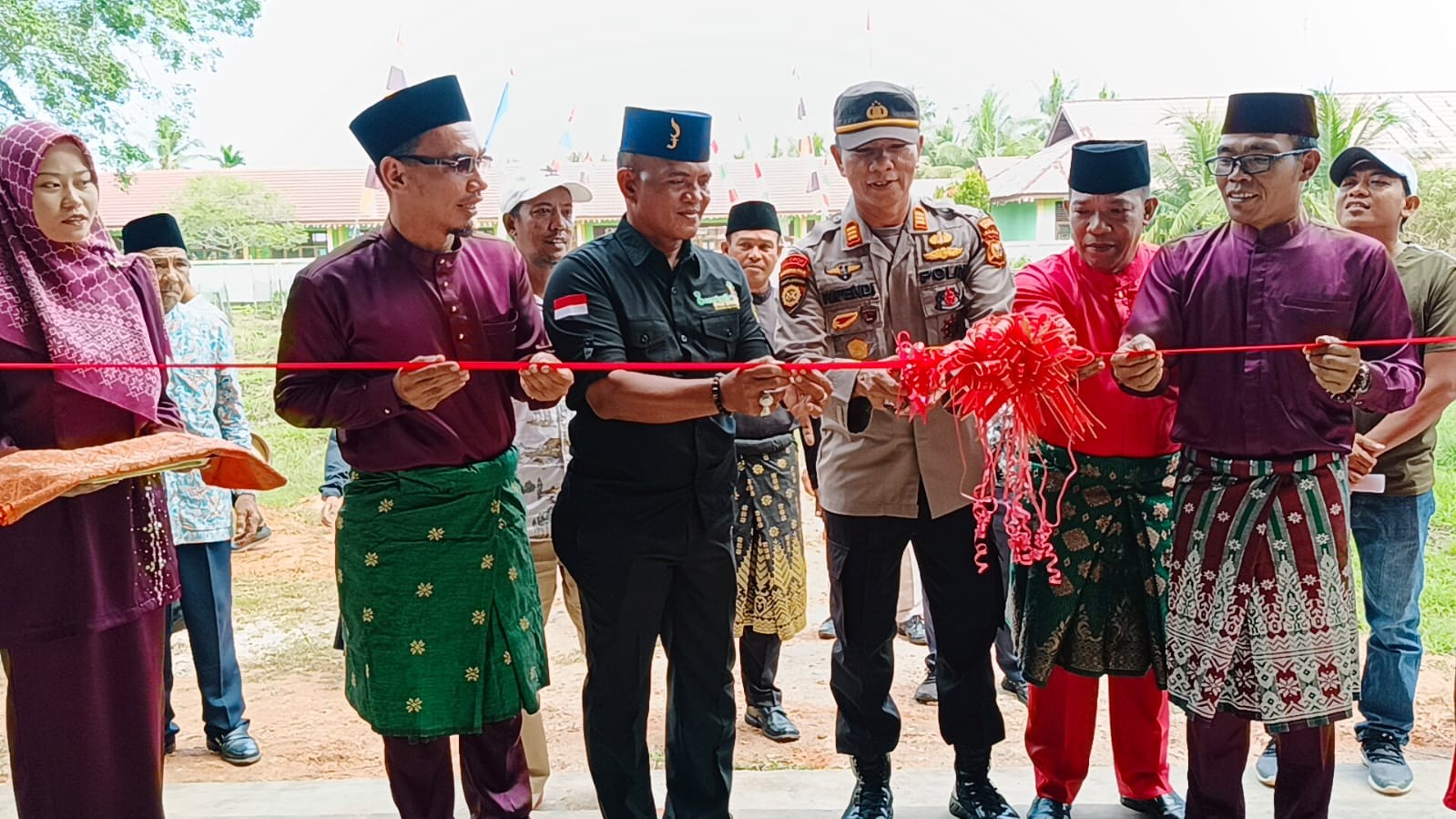 BATANGDUKU - Gedung Serba Guna Desa Batang Duku Kecamatan Bukit Batu yang bernama Syeh Harun, diresmikan pasa Ahad (27/8/2023).