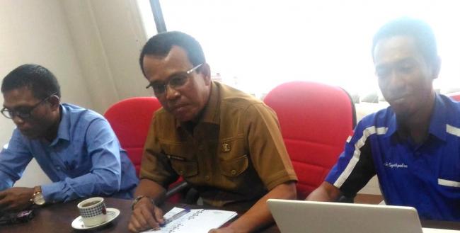 Keterangan Gambar : Plt Kepala Dinas PU Bengkalis Tajul Mudaris saat berbincang - bincang dengan wartawan harian Bengkalis, Senin (8/5/2017)