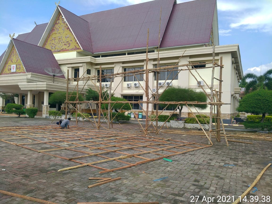 Keterangan Gambar : Progres pembangunan lampu colok di halaman kantor Dinas PUPR Bengkalis