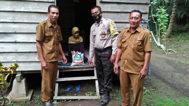 Pantauan media melalui Bhabinkamtibmas Desa Tenggayun Aipda Asmeri Polsek Bukit Batu membagikan 31 paket sembako serta masker gratis kepada Warga Desa Tenggayun yang kurang mampu dan terdampak ekonomi covid-19, Jumat (17/07/2020).