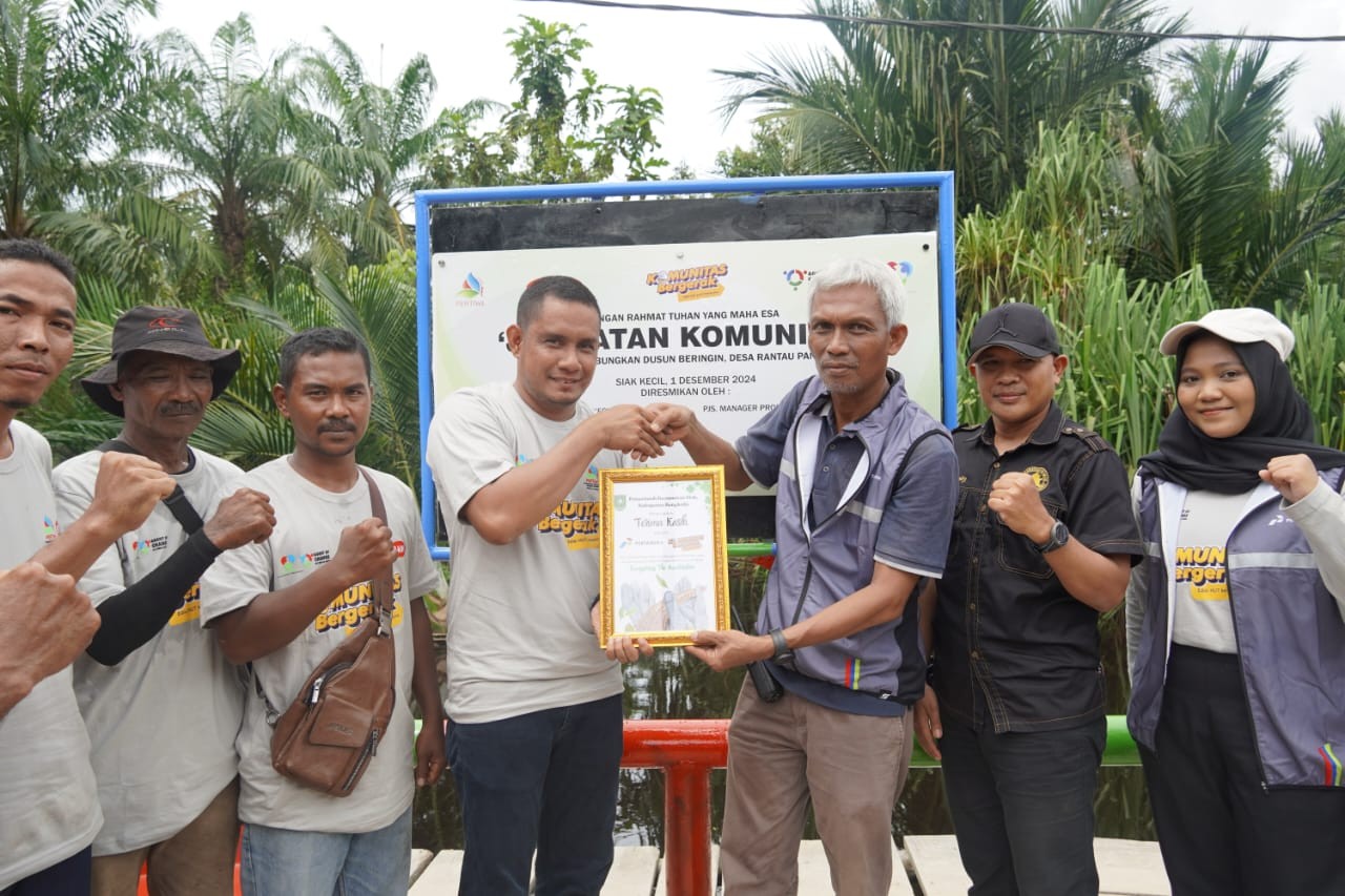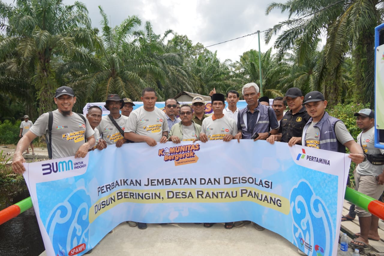 SIAKKECIL – Dalam rangka memperingati HUT Pertamina ke-67 dengan tema "Energizing the Acceleration," PT Kilang Pertamina Internasional RU II Sungai Pakning (KPI RU II SPK) meresmikan pembangunan Jembatan Dusun Beringin di Desa Lubuk Muda, Kecamatan Siak Kecil, Kabupaten Bengkalis. Jembatan ini merupakan salah satu bentuk kontribusi perusahaan dalam mendukung keberlanjutan dan peningkatan ekonomi masyarakat dengan menyediakan akses yang lebih mudah bagi warga untuk mengangkut hasil kebun mereka, (30/11/2024).