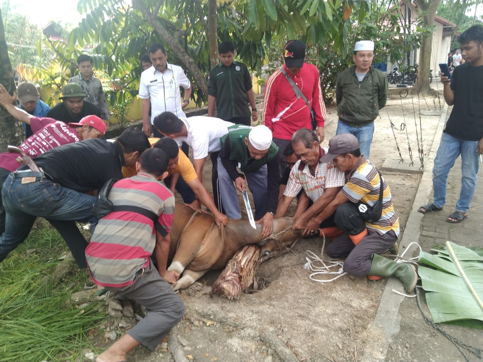 Keterangan Gambar : Kepala DTPHP Bengkalis Tarmizi memantau penyembelihan hewan kurban pada Hari Raya Idul Fitri 1445 Hijriyah tahun lalu