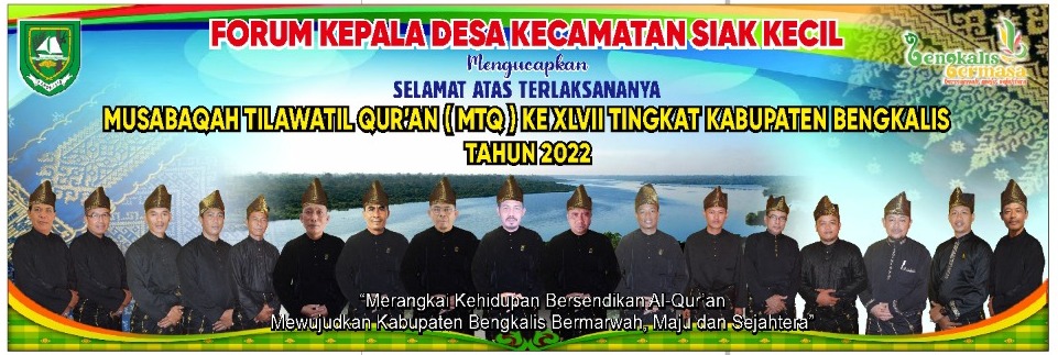 SUNGAIPAKNING - Forum Kepala Desa Kecamatan Siak Kecil mengucapkan selamat atas pelaksanaan Musabaqoh Tilawatil Quran (MTQ) ke 47 tingkat Kabupaten Bengkalis, yang akan digelar pada tanggal 14 sampai 20 November 2022 mendatang di Sungai Pakning Kecamatan Bukit Batu.