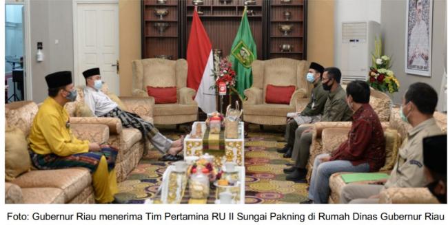PEKANBARU - Gubernur Riau, Drs. H. Syamsuar, memberikan apresiasi kepada PT Pertamina RU II Sungai Pakning atas kontribusinya dalam pengusulan putra Riau menjadi satu-satunya penerima Kalpataru Tahun 2020 dalam kategori Perintis Lingkungan atas nama Sadikin dari Kampung Jawa, Kelurahan Sungai Pakning, Kabupaten Bengkalis, Provinsi Riau yang merupakan mitra binaan CSR PT Pertamina RU II Sungai Pakning dalam Pencegahan Kebakaran Hutan dan Lahan Gambut.