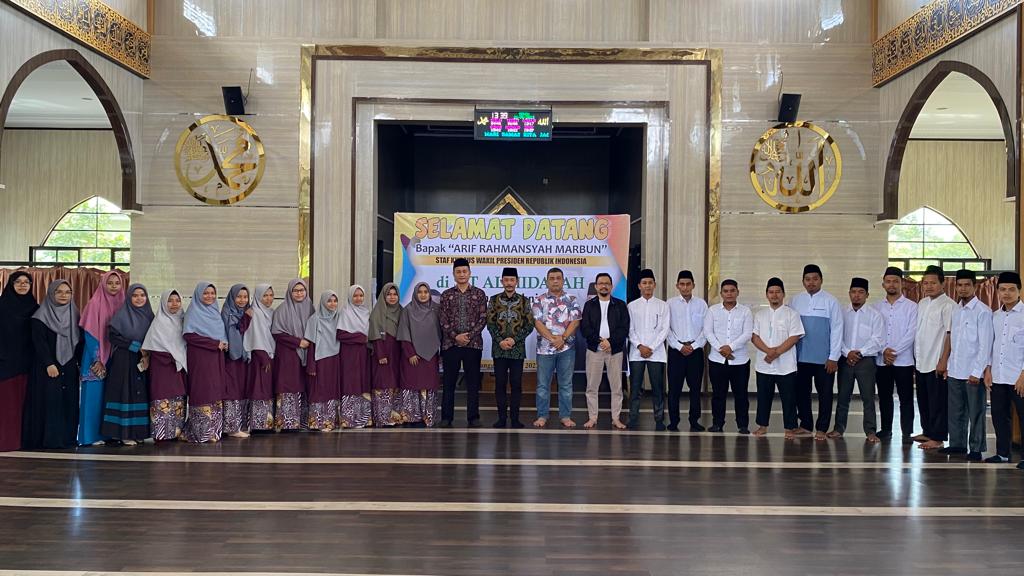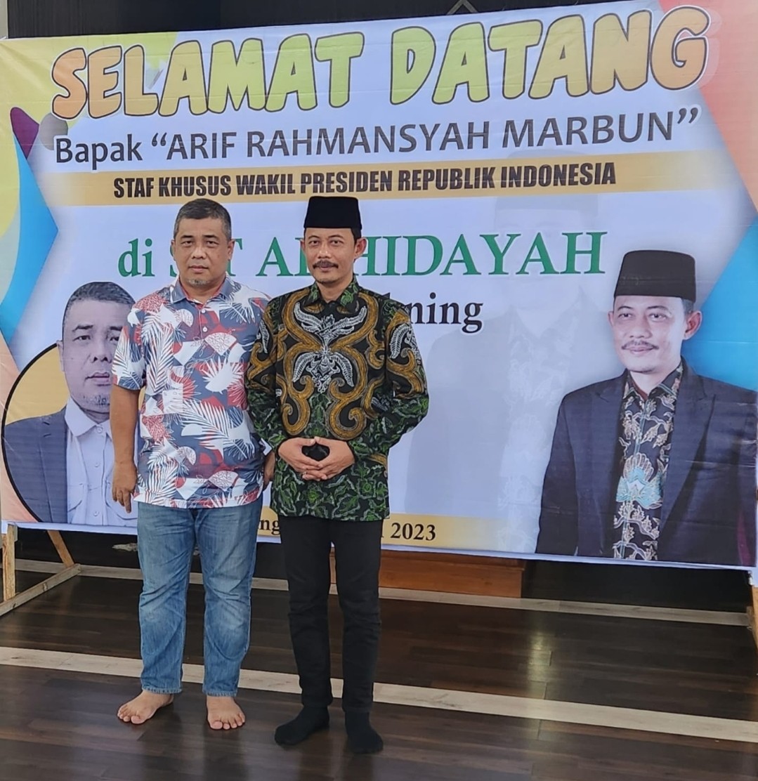 BUKITBATU - Staf Khusus Wakil Presiden Republik Indonesia yang juga salah seorang ketua Pengurus Besar Nahdhatul Ulama (PBNU) H. Arif Rahmansyah Marbun, Senin (26/6/2023) berkunjung ke Sekolah Islam Terpadu (SIT) SD dan SMP Al Hidayah Sungai Pakning, Jalan Jendral Ahmad Yani Desa Sejangat Kecamatan Bukit Batu.