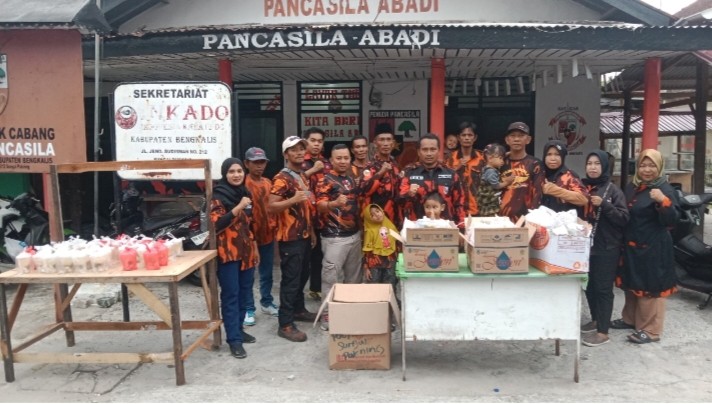 BUKIT BATU-Pimpinan Anak Cabang Pemuda Pancasila (PAC PP) Kecamatan Bukit Batu, Kabupaten bengkalis bagikan 600 paket takjil kepada warga dan pengendara jalan.