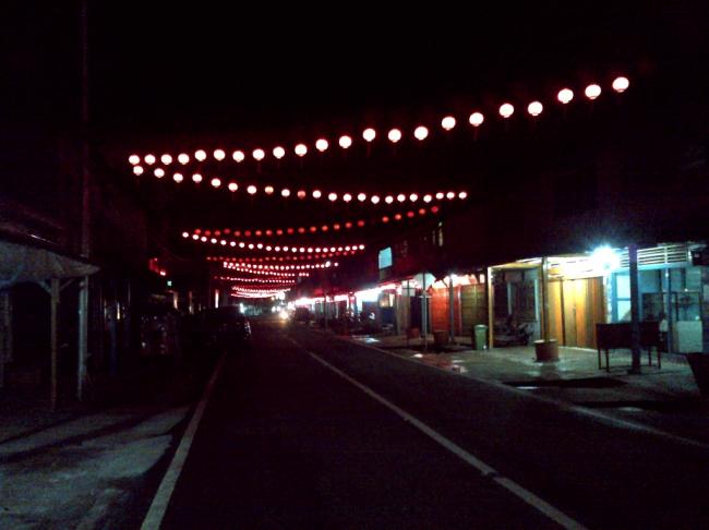 RiauBerdaulat.com,SUNGAIPAKNING -- Ribuan lampion yang dipasang di sepanjang jalan Jendral Sudirman Sungai Pakning untuk menyambut tahun baru Imlek memperindah Ibu Kota Kecamatan Bukit Batu kususnya di malam hari.