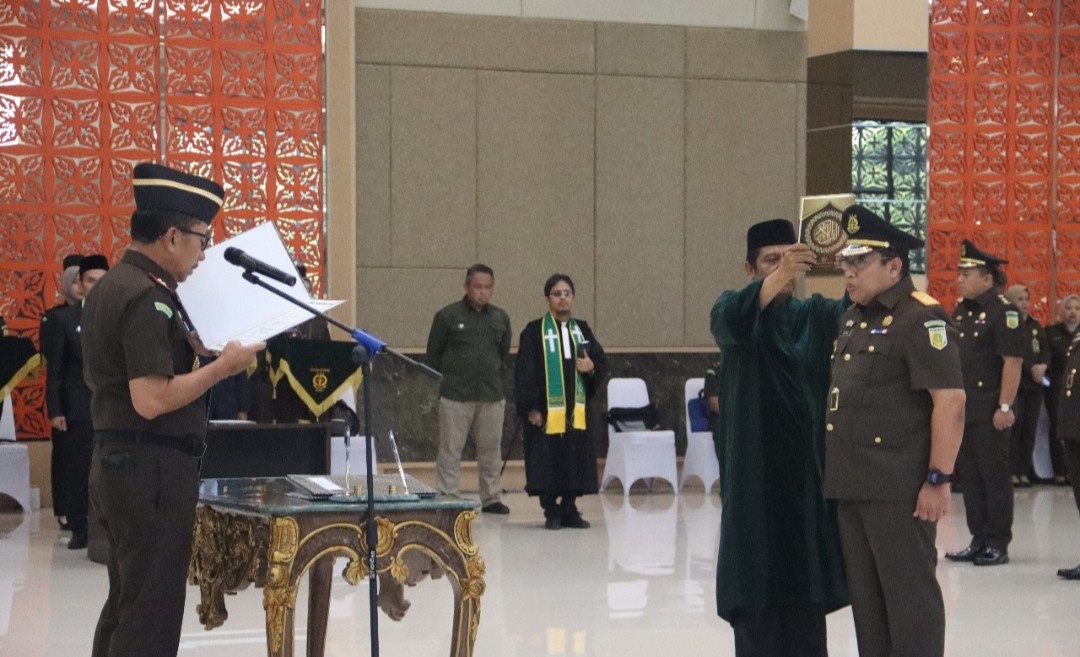 PEKANBARU – Kepala Kejaksaan Tinggi (Kajati) Riau, Akmal Abbas, melantik dan mengambil sumpah sejumlah pejabat strategis di lingkungan Kejati Riau, Kamis (24/7/2025). Dalam arahannya, Akmal menekankan pentingnya profesionalisme, integritas, dan kepemimpinan kolaboratif demi meningkatkan kinerja penegakan hukum dan pelayanan publik di Bumi Lancang Kuning.