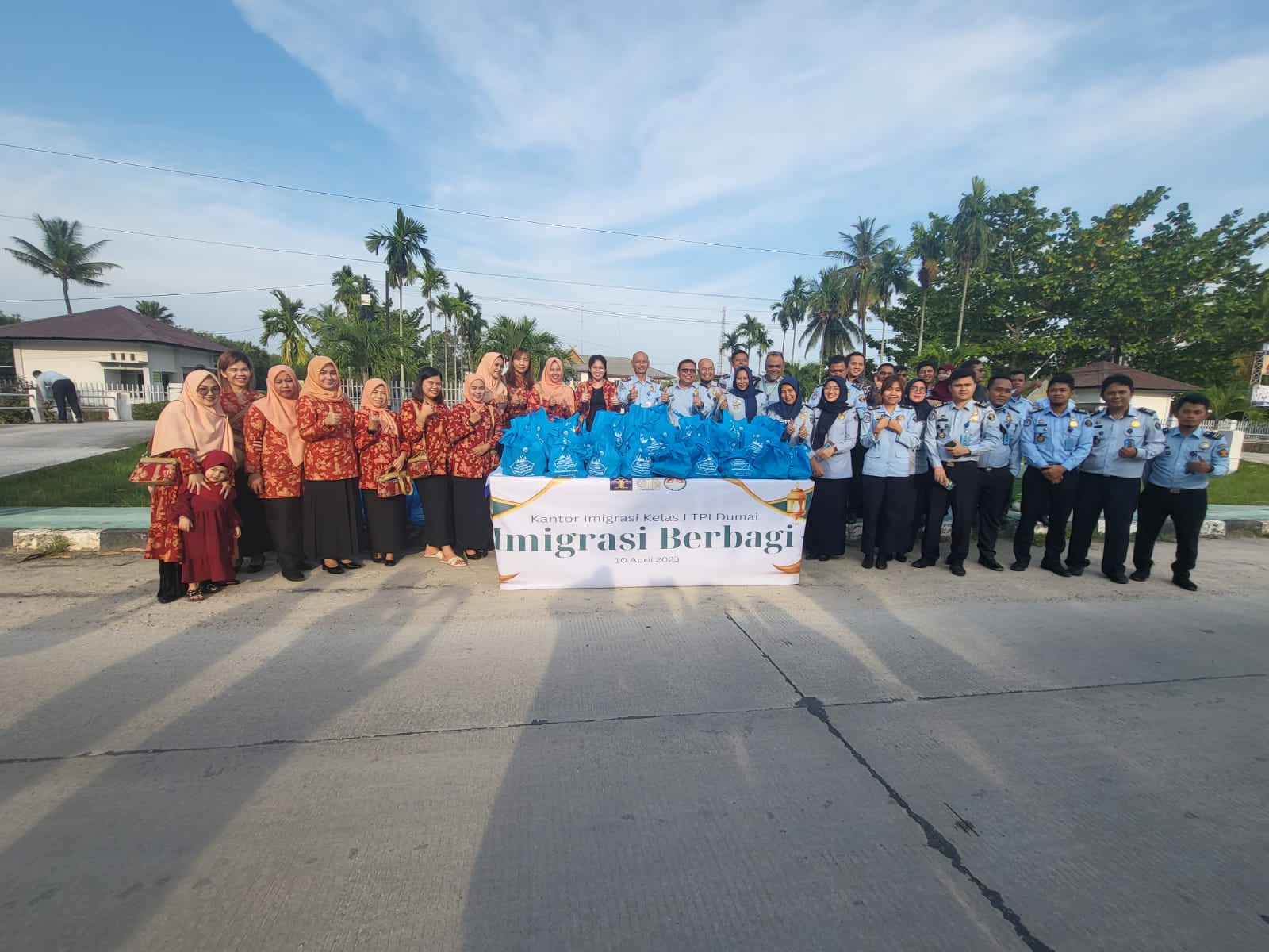 DUMAI - Sebagai bentuk kepedulian sosial di bulan suci ramadhan, bulan yang penuh dengan keberkahan, Kantor Imigrasi kota Dumai kelas I TPI kota Dumai, melaksanakan pembagian 300 paket takjil gratis untuk masyarakat yang melewati Jalan Raya Jendral Yos Sudarso, Kelurahan Buluh Kasap Kecamatan Dumai Timur, Kota Dumai, Senin (10/04/2023).