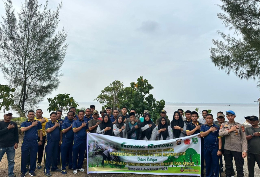BENGKALIS – Semangat kebersamaan dan kepedulian terhadap lingkungan kembali ditunjukkan oleh Polres Bengkalis bersama Forum Koordinasi Pimpinan Daerah (Forkopimda) dan Badan Penanggulangan Bencana Daerah (BPBD) Kabupaten Bengkalis dalam kegiatan gotong royong massal yang digelar di kawasan Taman Jalur Kabupaten Bengkalis, Jumat (6/2/2026) pagi.