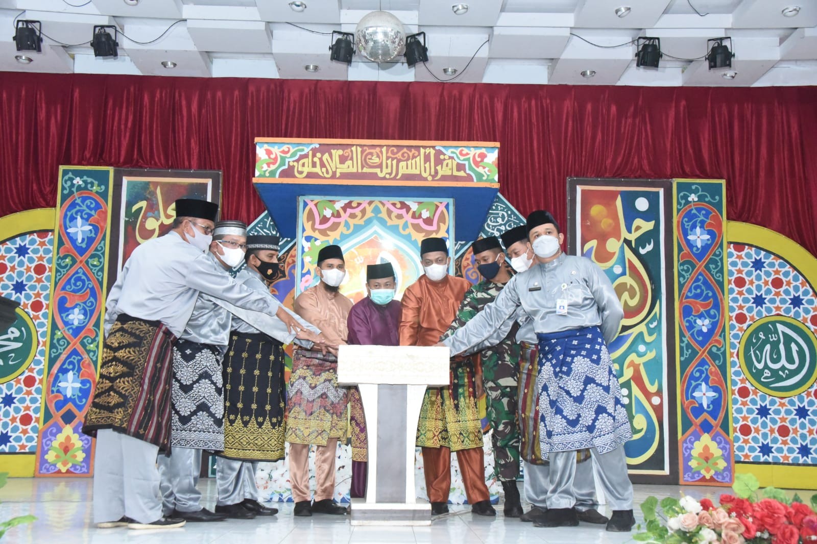 Keterangan Gambar : Penekanan Sirine tanda dibukanya MTQ XXXII tingkat kecamatan Bukit Batu tahun 2021 oleh Asisten Perekonomian dan Pembanguna Heri Indra Putra, Ketua Komisi I DPRD Bengkalis Zuhandi, Camat Bukit Batu dan sejumlah pejabat lainnya