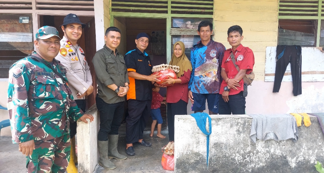 Anggota DPRD Bengkalis Dapil II, Asep Setiawan, A.Md, juga hadir langsung di lokasi, turut membantu mendistribusikan sembako ke warga yang sedang mengungsi akibat banjir.