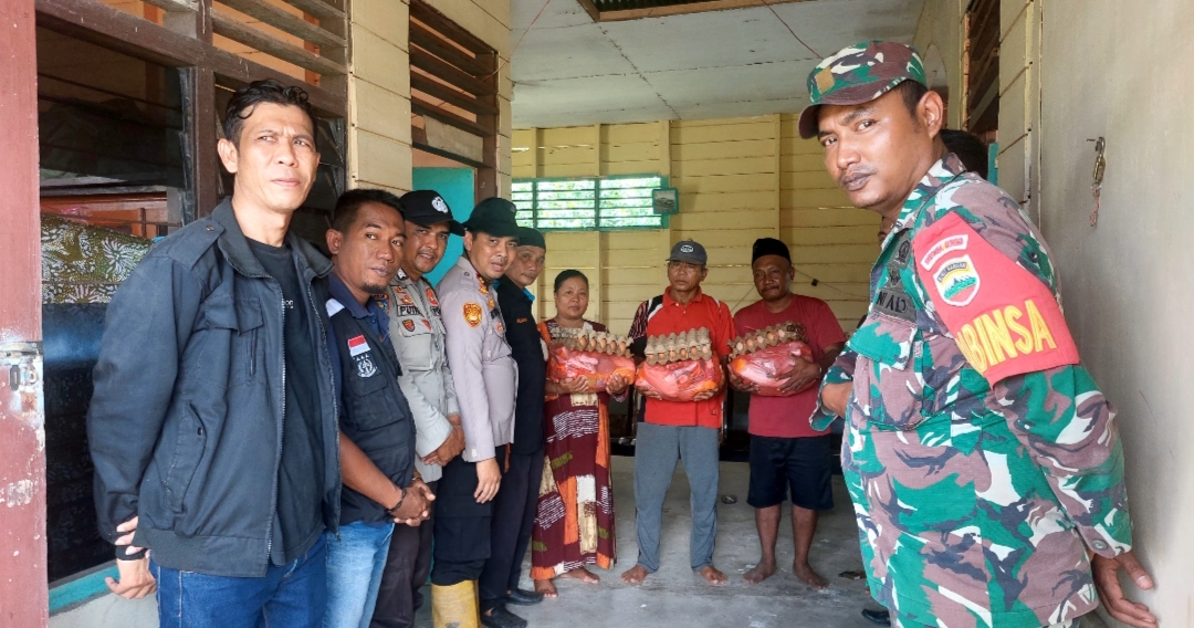 Keterangan Gambar : Penyaluran Paket Sembako dari Koperasi BBDM ke Desa Bandar Jaya Kecamatan Siak Kecil, oleh Kapolsek Siak Kecil dan Tim, Anggota DPRD Bengkalis Asep Setiawan, Anggota Koramil Bukit Batu, Pengurus FWBS dan sejumlah tokoh, Kamis (24/04/2025).