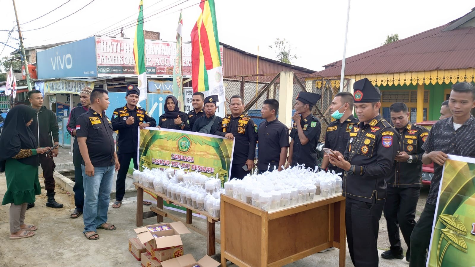 DUMAI - Di bulan suci ramadhan yang penuh dengan keberkahan ini ,lembaga laskar Melayu bersatu (LLMB) dewan pimpinan wilayah kota Dumai provinsi riau melaksanakan kegiatan bakti sosial berupa berbagi takjil gratis kepada masyarakat yang ngabuburit menjelang buka puasa di depan markas laskar Melayu bersatu (LLMB) bertepat di jln. kesuma jaya mukhti kecamatan Dumai timur, Kamis(06/04/2023).