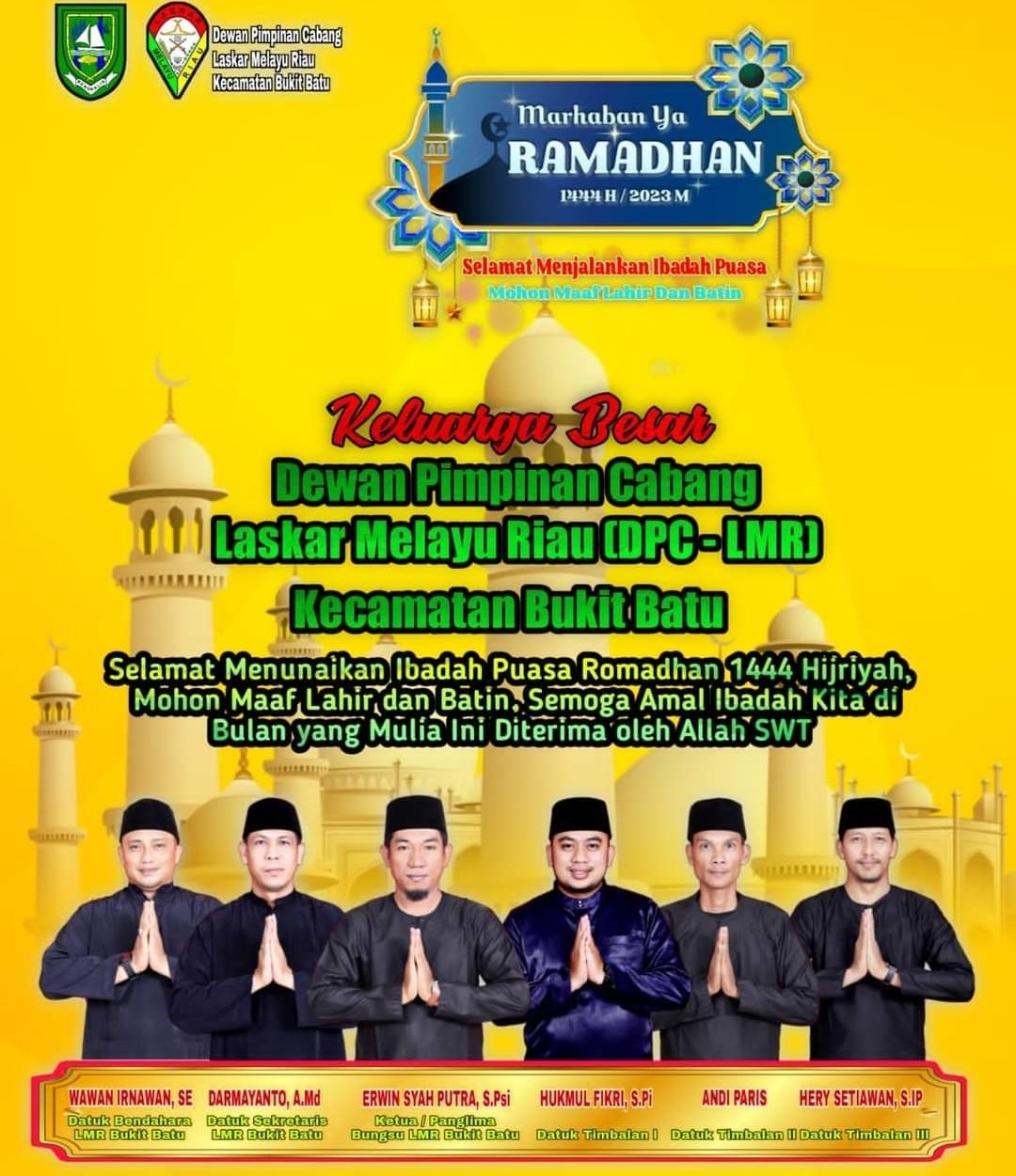 Keterangan Gambar : Pengurus LMR Bukit Batu mengucapkan selamat menunaikan ibadah puasa Romadhon 1444 Hijriyah