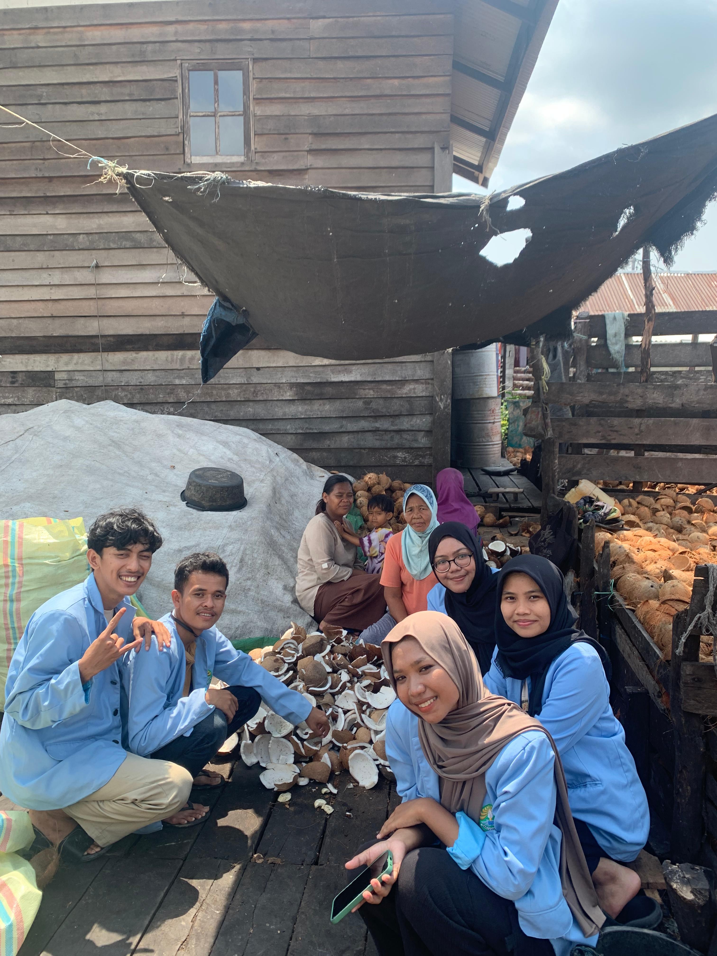 TEMBILAHAN - Mahasiswa Kuliah Kerja Nyata UNRI 2024 melakukan kunjungan ke salah satu usaha kelapa kopra di Desa Kuala Sungai Batang Kecamatan Sungai Batang Kabupaten Indragiri Hilir.