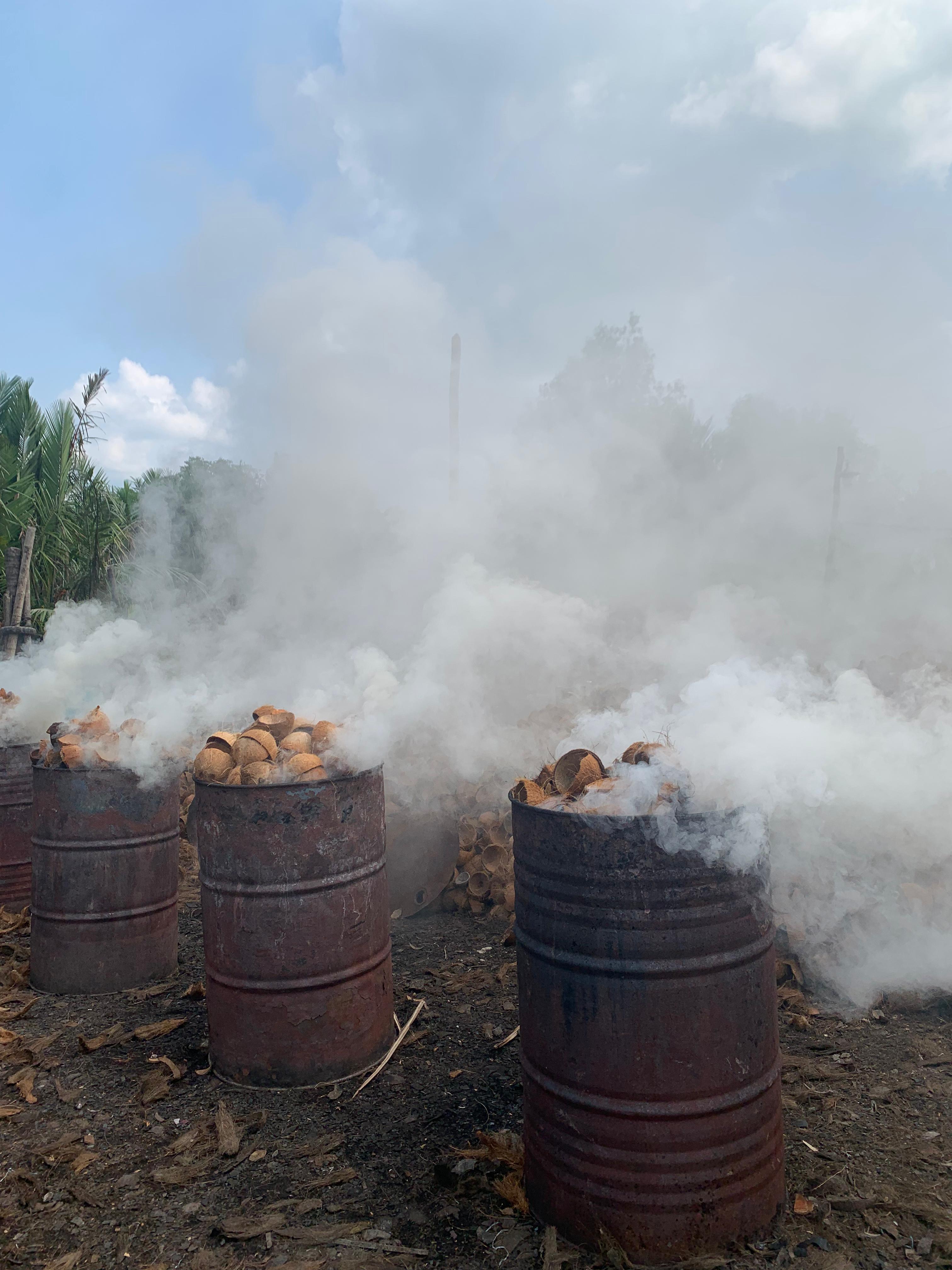 Berapa lama pengumpulan tempurung kelapa untuk dijadikan arang?