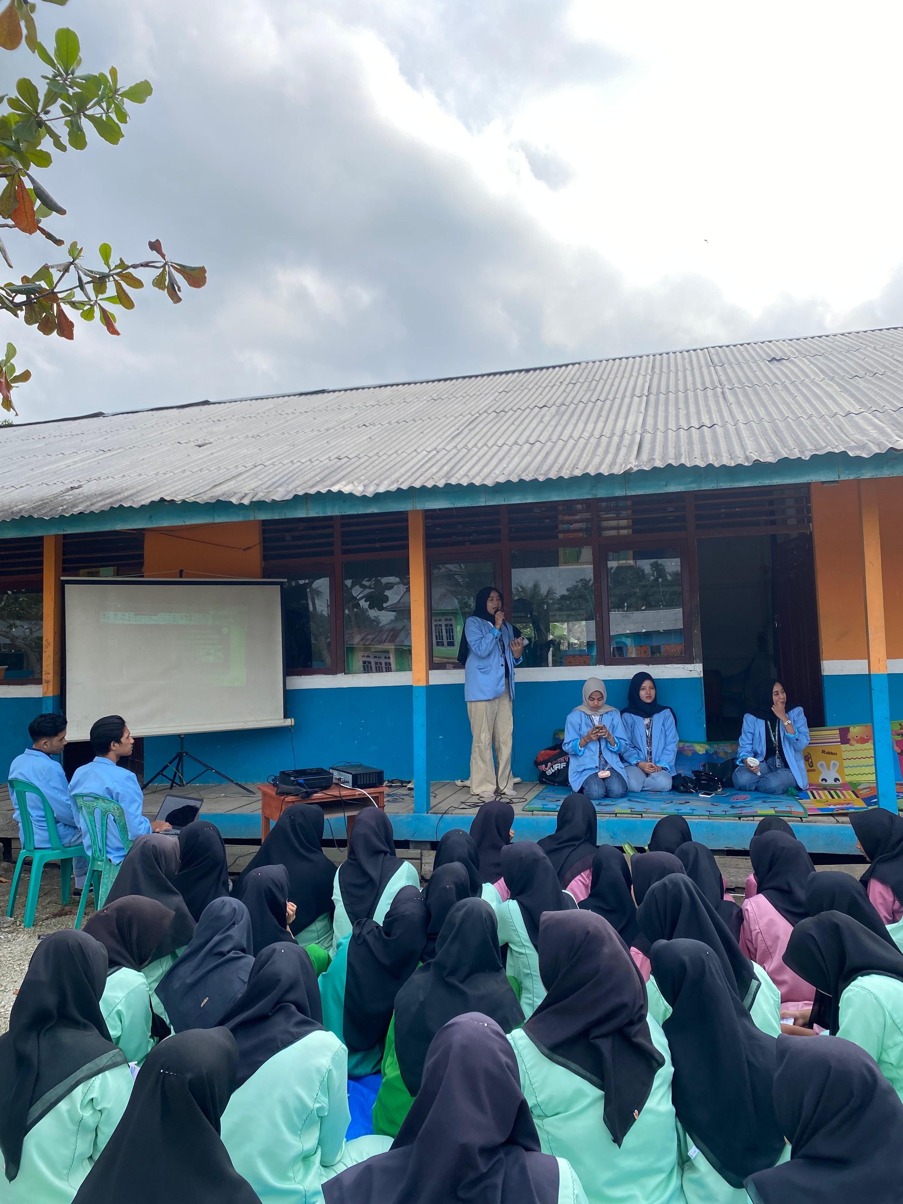 Keterangan Gambar : Sosialisasi Penggunaan Medsos yang Bijak oleh mahasiswa Kukerta UNRI 2024