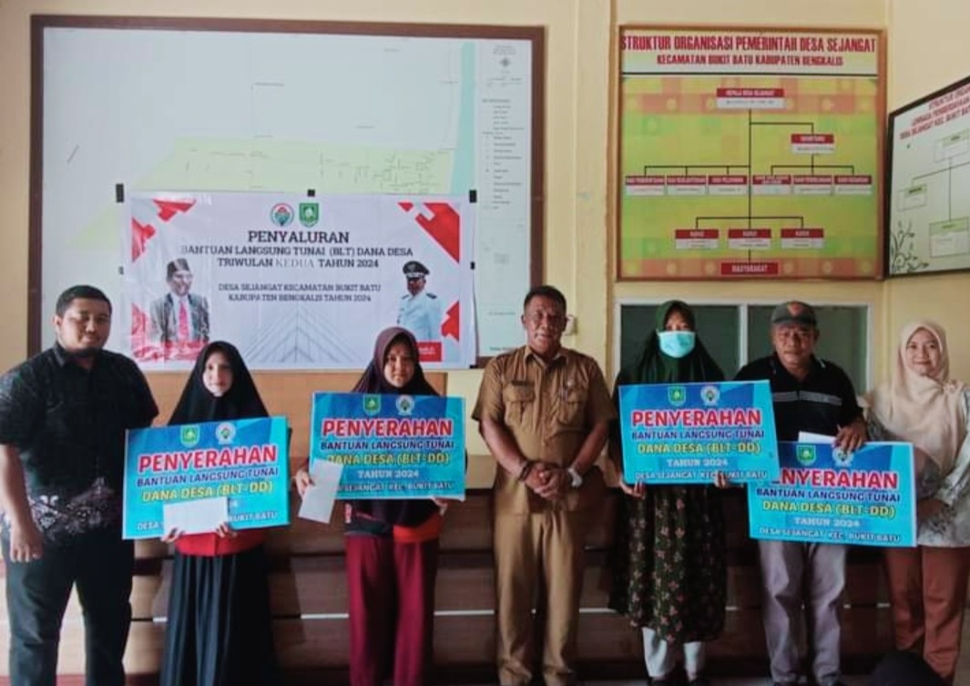 Pemerintah Desa Sejangat kecamatan Bukit Batu Kabupaten Bengkalis Menyalurkan Bantuan Langsung Tunai ( BLT ) Dana Desa Tahap II Tahun anggaran 2024 bertempat di aula kantor desa Sejangat Jalan Ahmad Yani (07/2024).
