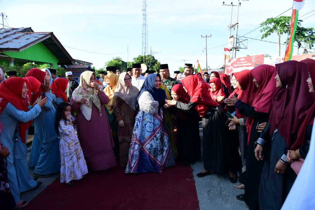 Keterangan Gambar : Terlihat antusias masyarakat Batu Panjang Rupat saat menyambut kedatangan Bupati Bengkalis Kasmarni