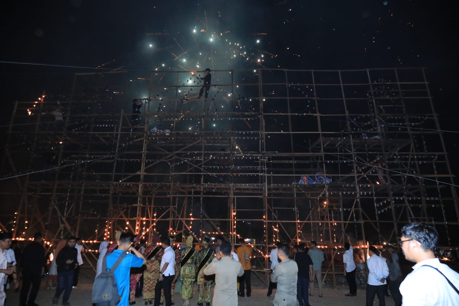 Ratusan lampu colok berukuran besar menyala, menghiasi malam dengan cahaya yang mempesona. Kemeriahan festival semakin lengkap dengan pertunjukan kembang api yang mempercantik langit di sekitar Jalan Jenderal Sudirman.