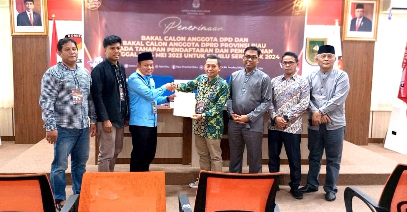 DUMAI - Didampingi oleh Dua Orang Liaison officer (LO) Jufrizal mendaftarkan diri menjadi Calon Dewan Perwakilan Daerah (DPD) RI di Komisi Pemilihan Umum Daerah (KPUD) Riau, Setekah mendaftarkan diri ia siap akan memperjuangkan aspirasi masyarakat riau. (05/05/2023).
