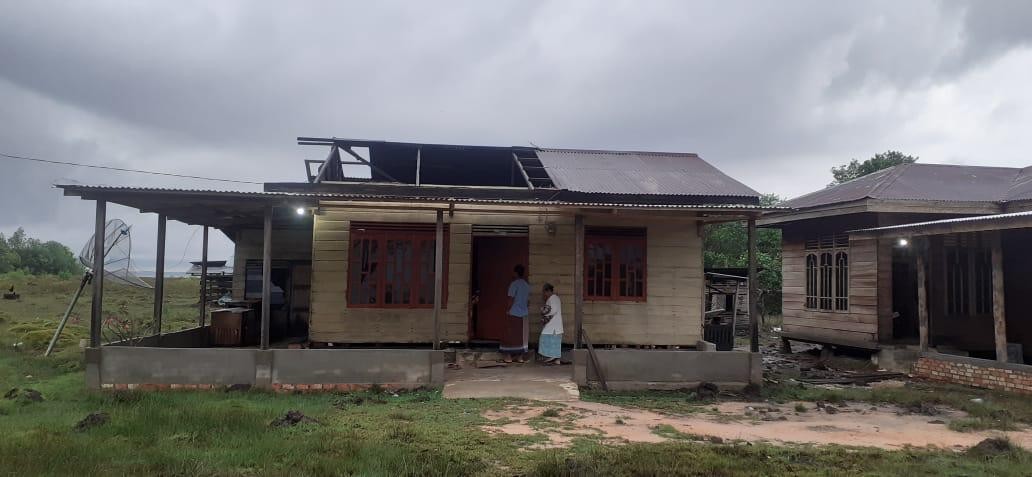 Keterangan Gambar : Kondisi salah satu rumah warga Desa Dompas yang menjadi korban angin puting beliung, Ahad (7/3/2021)
