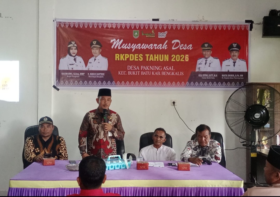 SUNGAI PAKNING – Pemerintah Desa Pakning Asal, Kecamatan Bukit Batu, Kabupaten Bengkalis, menggelar Musyawarah Desa (Musdes) Penyusunan Rencana Kerja Pemerintah Desa (RKPDES) Tahun 2026, sebagai forum penting dalam merumuskan arah pembangunan desa ke depan.