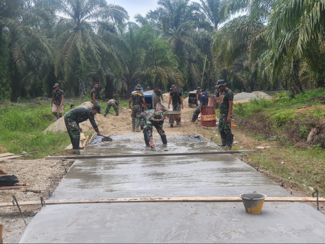 Keterangan Gambar : Pembangunan semenisasi jalan oleh Tim Satgas TMMD Bengkalis