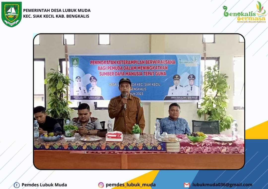 SIAKKECIL - Pemerintah Desa Lubuk Muda Kecamatan Siak Kecil Kabupaten Bengkalis menggelar pelatihan keterampilan berwirausaha bagi pemuda, acara digelar digedung Serba Guna Desa, (12/2023).