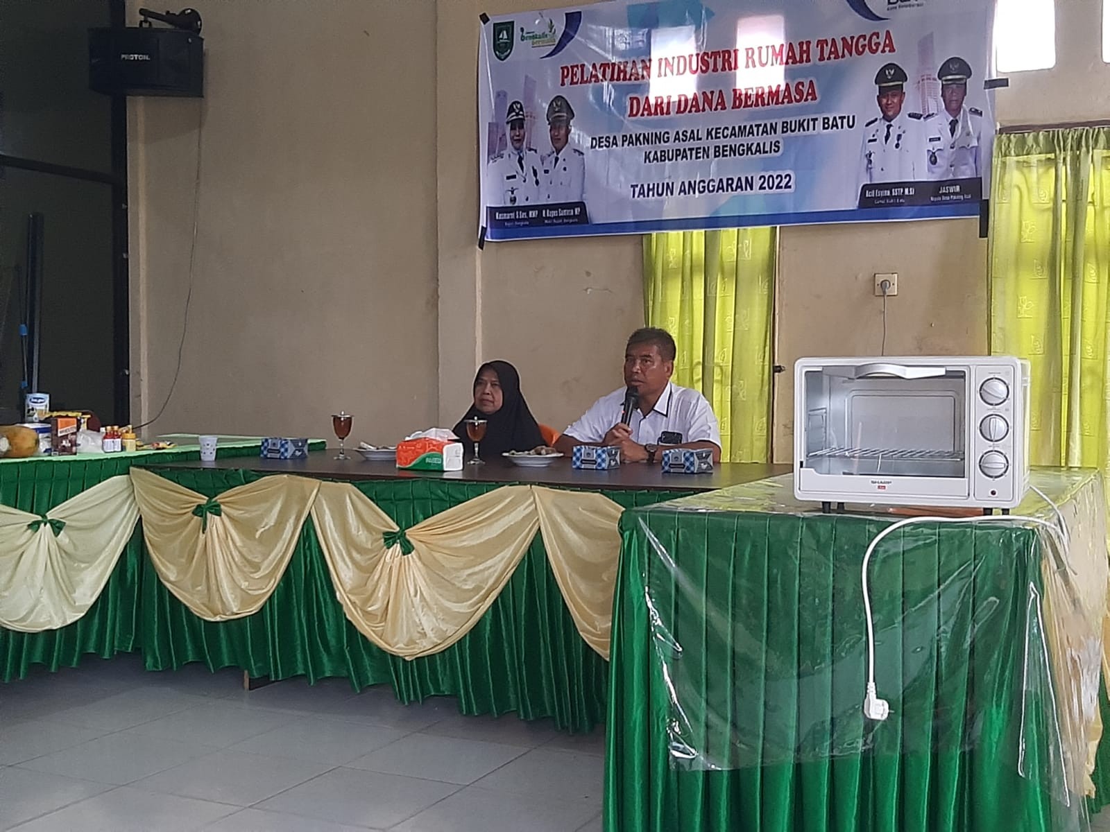 PAKNINGASAL - Pemerintah Desa Pakning Asal Kecamatan Bukit Batu, pada Rabu tanggal 28 Desember 2022, bertempat di Aula Kantor Desa Pakning Asal mengadakan Pelatihan Industri Rumah Tangga dalam bidang Pembuatan Kue Bolu Dam atau Kue bermotif Catur.