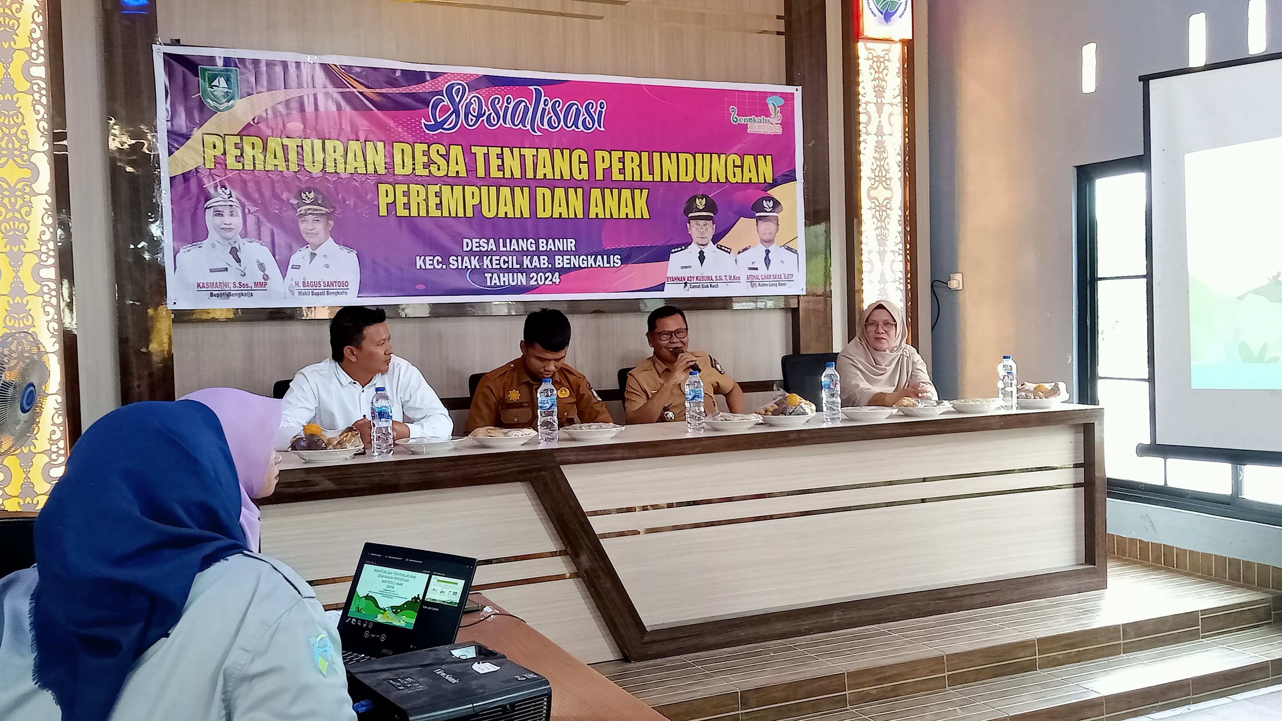 BENGKALIS - Senin 30 Desember 2024 Pemerintah Desa Liang Banir Kecamatan Siak Kecil menggelar kegiatan Penyusunan dan Sosialisasi Peraturan Desa (Perdes) Perlindungan Perempuan dan Anak yang diikuti 20 Peserta dengan menggunakan dana bermasa di Aula Kantor Desa Liang Banir, dengan mengundang Kepala Dinas Pemberdayaan Perempuan dan Perlindungan Anak (DPPPA) Kabupaten Bengkalis diwakili Kepala Bidang Pemenuhan Hak dan Perlindungan Anak (PHPA) Fitrianita Eka Putri beserta jajaran.