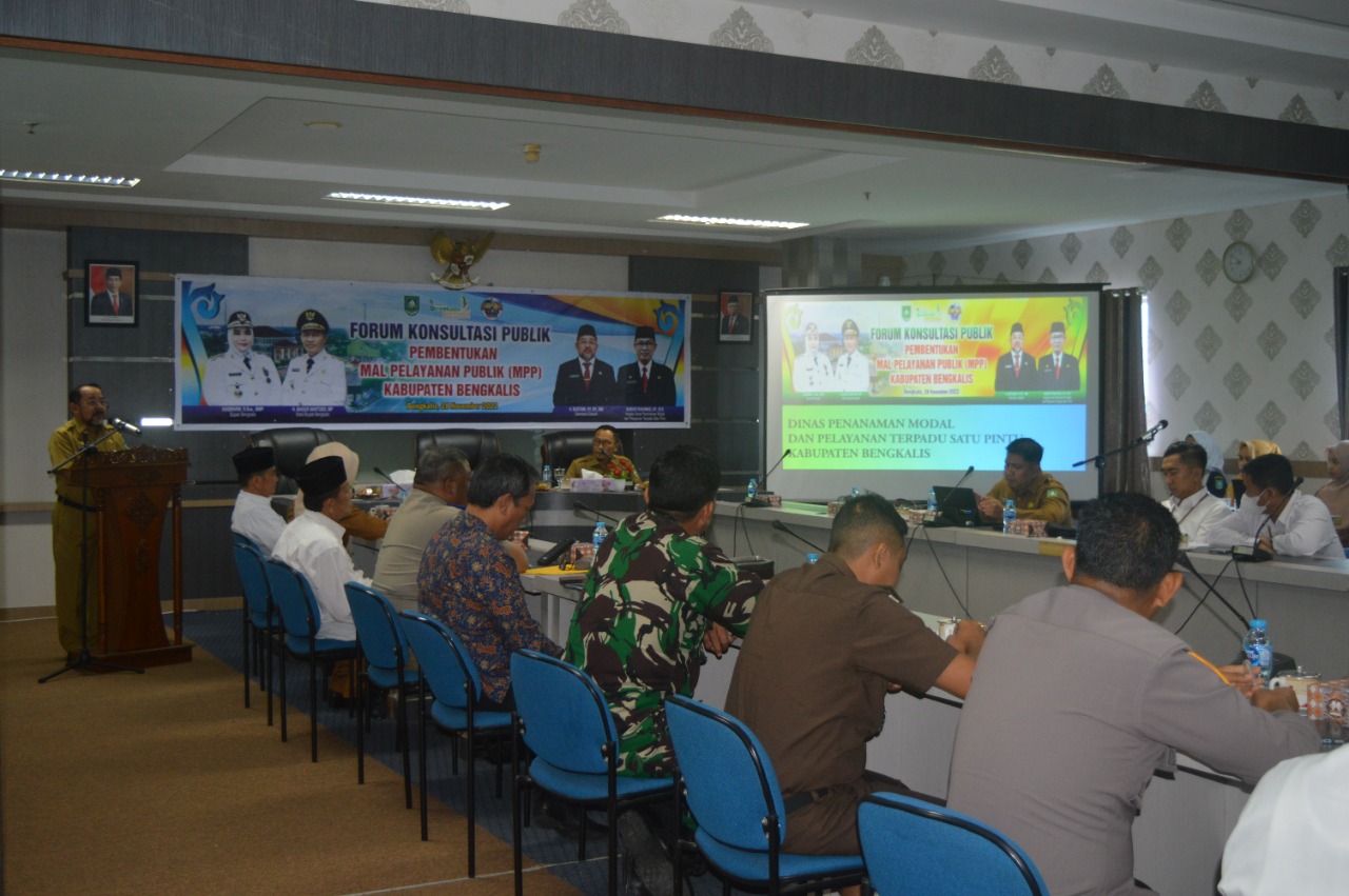 Keterangan Gambar : Sekda Bengkalis Bustami dan Kepala DPMPTSP Bengkalis Basuki saat pelaksanaan Forum Konsultasi Publik MPP