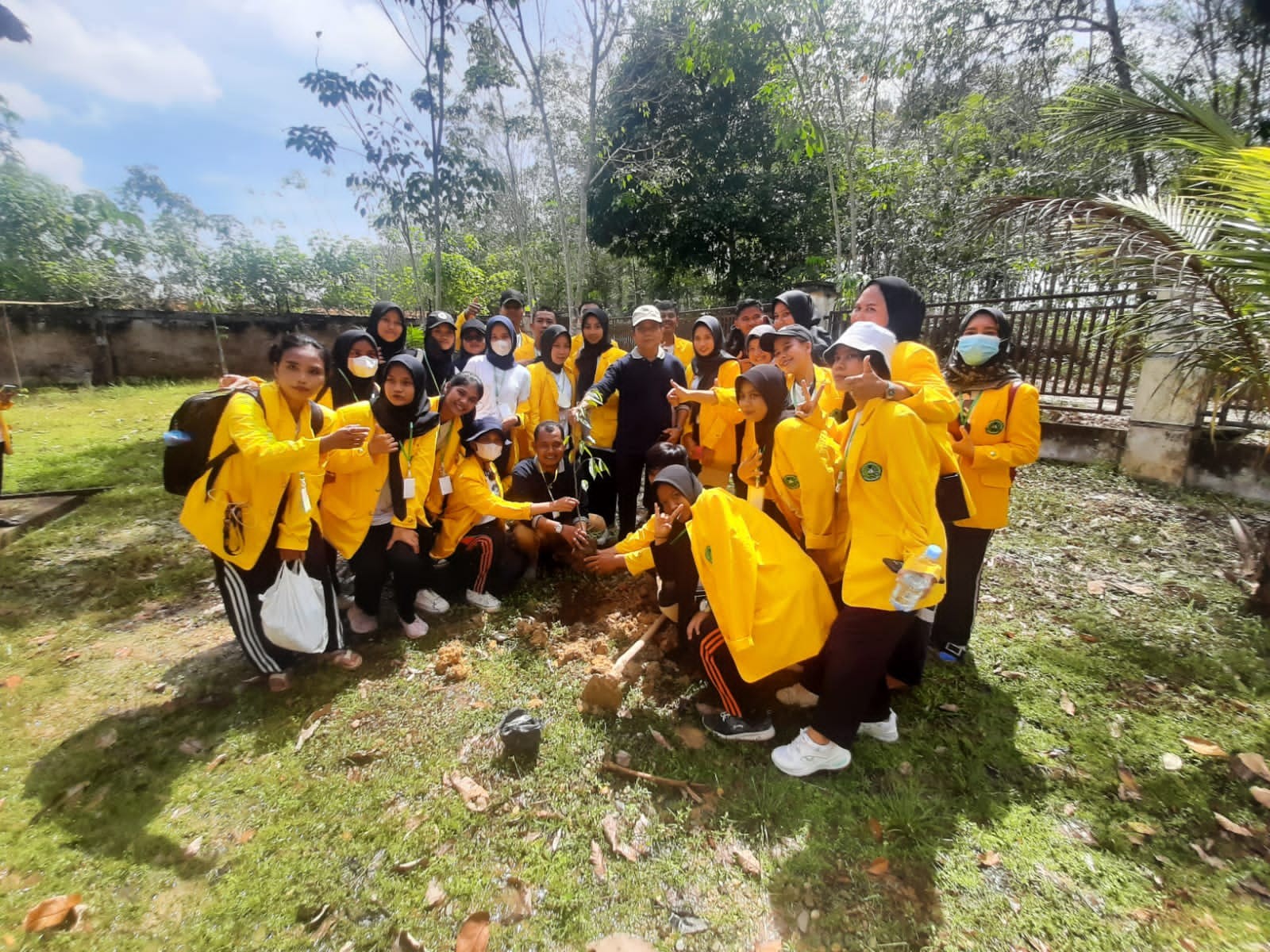 Keterangan Gambar : Peserta KKBSM FIA Unilak didukung BPDASHL Inrok KLHK melakukan aksi penanaman pohon di tepian mahligai, Kampar.
