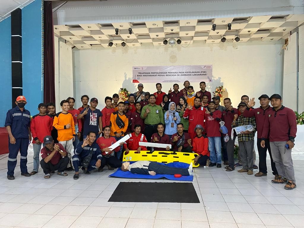 SUNGAIPAKNING - PT Kilang Pertamina Internasional Unit II Sungai Pakning mengadakan Pelatihan Pertolongan Pertama pada Kecelakaan Bagi Masyarakat Peduli Bencana Se-Gerbang Laksamana pada Selasa (31/01).