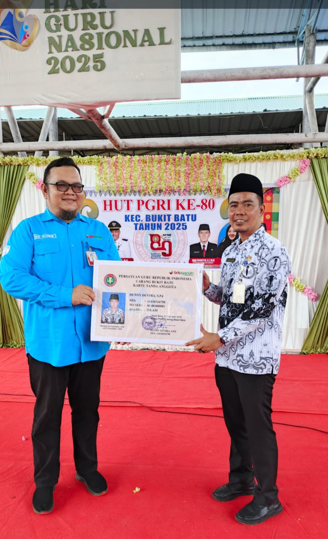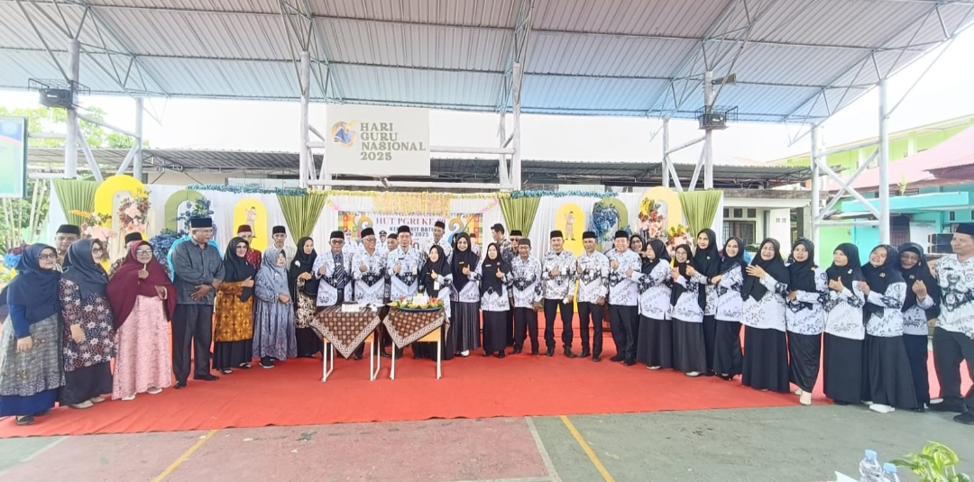 BENGKALIS — Peringatan Hari Ulang Tahun ke-80 Persatuan Guru Republik Indonesia (PGRI) dan Hari Guru Nasional (HGN) 2025 di Kecamatan Bukit Batu menghadirkan suasana berbeda. Tidak sekadar seremonial tahunan, kegiatan yang digelar di SMA Negeri 1 Bukit Batu, Kamis (27/11/2025), menjadi panggung penghormatan bagi para pensiunan guru dan tokoh pendiri organisasi yang selama bertahun-tahun absen dari kegiatan PGRI.