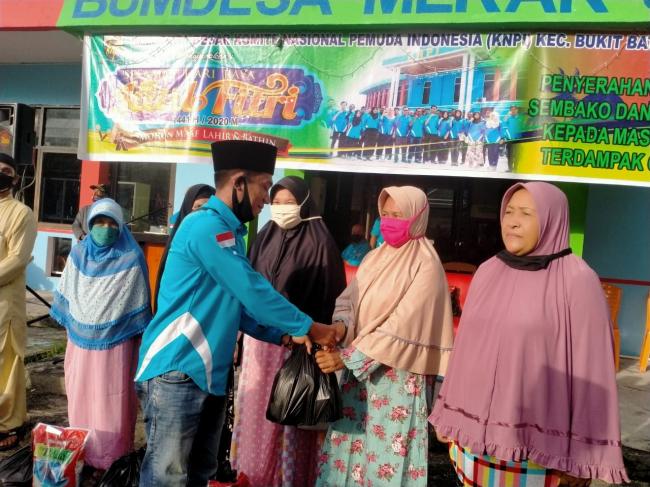 SUNGAI PAKNING- Prihatin dengan kondisi ekonomi masyarakat terdampak wabah Covid - 19 yang terjadi saat ini, jajaran pengurus Komite Nasional Pemuda Indonesia (KNPI) Kecamatan Bukit Batu menyalurkan 95 paket pangan, Jum'at (22/5/2020).