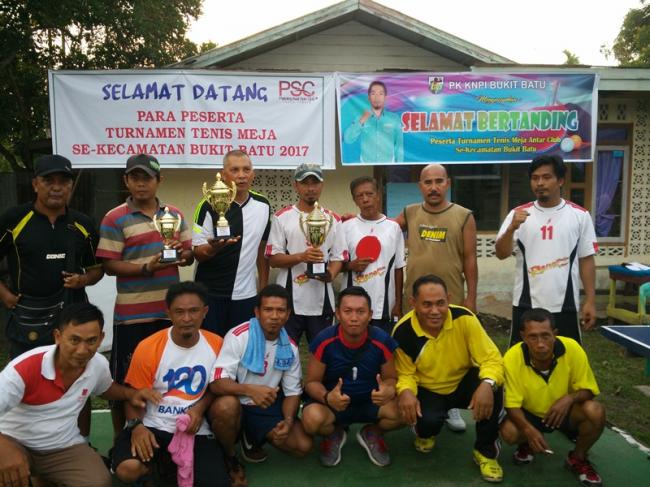 BUKIT BATU - Turnamen tenis meja antar club sekecamatan Bukit Batu di juarai Pakning Asal Spin Club (PSC - A), Senin ( 02/10/2017)