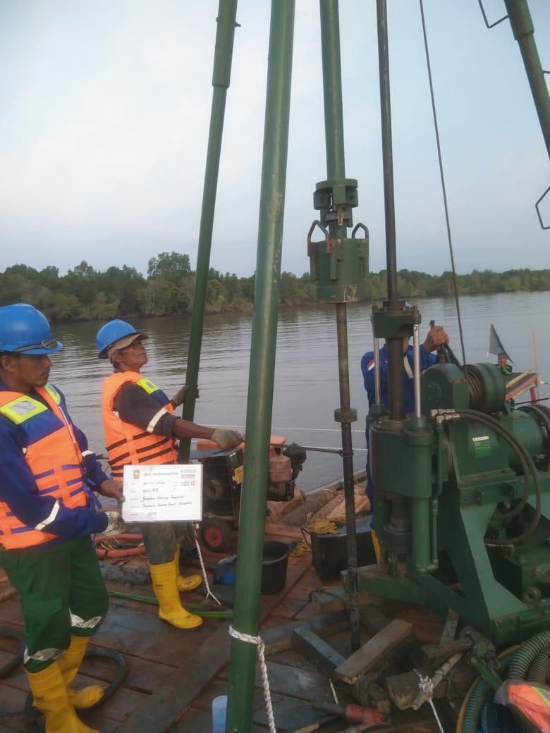 Keterangan Gambar : Proses pengeboran kekuatan tanah untuk Basic Desain di Lokasi rencana Pembangunan Jembatan Bengkalis - Sumatera