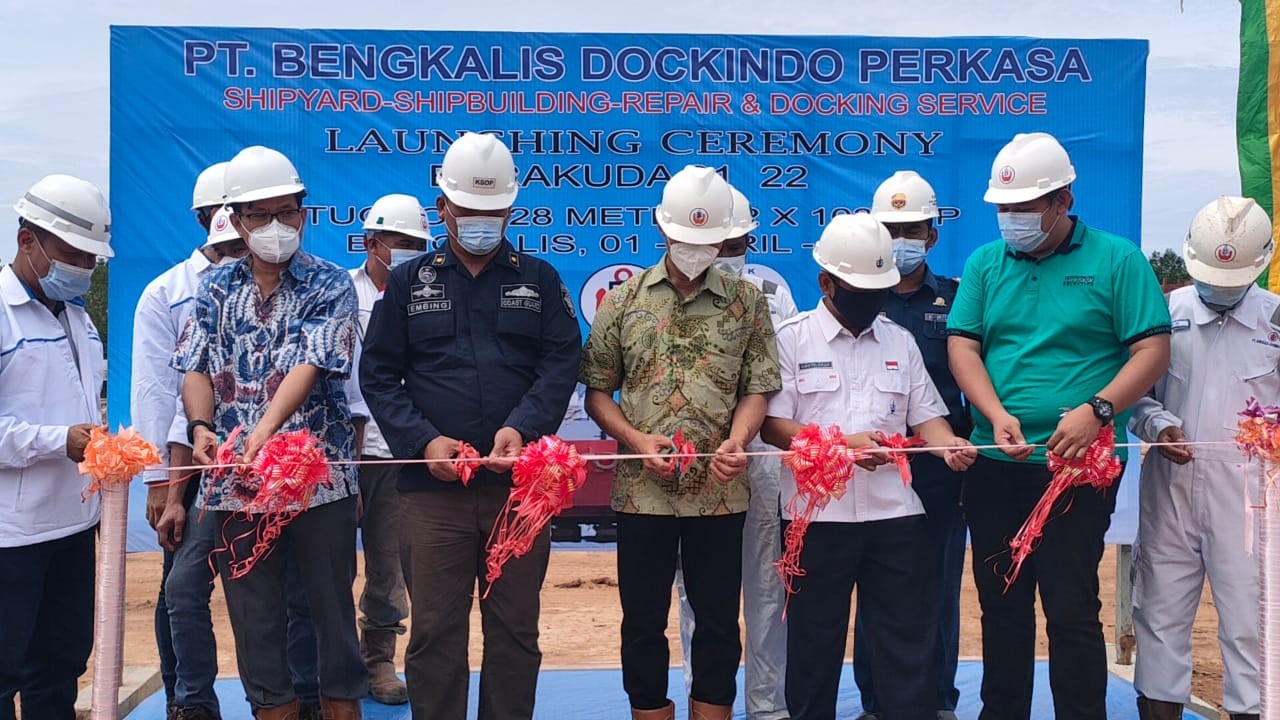 BENGKALIS - PT. Bengkalis Dockindo Perkasa (BDP) yang berpusat di Desa Sungai Siput Kecamatan Siak Kecil Kabupaten Bengkalis, Kamis (1/4/2021) menggelar acara Launching Ceremony Perdana Tug Boat (TB) Barakuda 01 22.