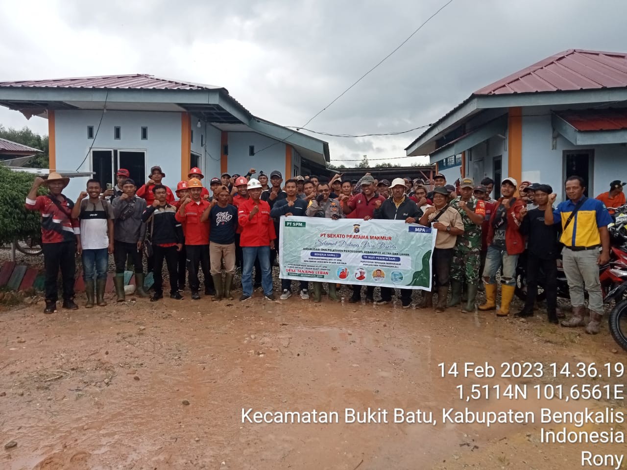 BANDARLAKSAMANA - PT Sakato Pratama Makmur (SPM) kembali menggelar sosialisasi dan pelatihan pencegahan Kebakaran Hutan dan Lahan (Karhutla) di Desa Tanjung Leban Kecamatan Bandar Laksamana Kabupaten Bengkalis, Selasa (04/02/2023).