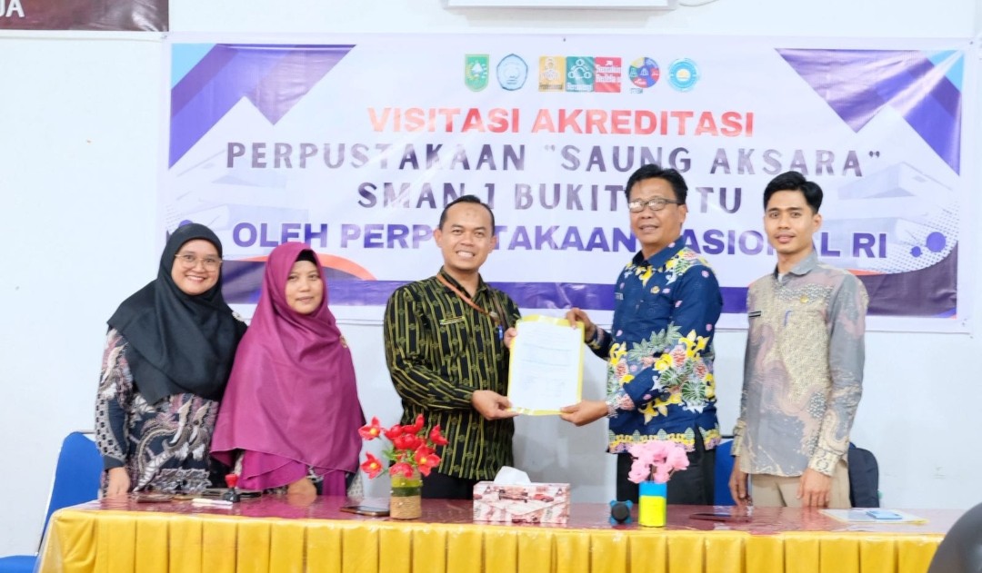 BENGKALIS — Prestasi membanggakan kembali ditorehkan SMAN 1 Bukit Batu Kabupaten Bengkalis. Unit layanan literasi sekolah yang dikenal dengan Pustaka Saung Aksara resmi meraih Akreditasi A setelah dinyatakan memenuhi seluruh unsur penilaian oleh Tim Asesor Perpustakaan Nasional (Perpusnas RI) dalam sidang pleno pada 26 November 2025.