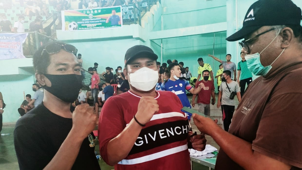 BENGKALIS - Tim Futsal / Futsal Club (Fc) Putra Mahkota yang dipimpin oleh Anggota DPRD Bengkalis Septian Nugraha, berhasil memukul mundur Tim Cahaya Indah Fc dari Dumai dengan skor telak 6 : 3, pada babak penyisihan Open Turnamen Futsal Forwari Cup (OTFFC) ke 2 tahun 2021, di GOR Perkasa Alam Bengkalis.