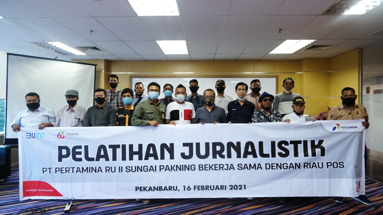 PEKANBARU - Sebagai wujud tanggung jawab sosial perusahaan, PT. Pertamina (Persero) RU II Production Sungai Pakning menggelar kegiatan pelatihan jurnalistik di Graha Pena Riau, Panam, Pekanbaru, Selasa, 16 Februari 2021.