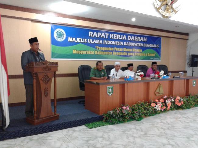 Sementara itu Ketua MUI Bengkalis Amrizal dalam sambutannya mengajak kepada seluruh ulama yang ada untuk dapat turun gunung, yang mana pada hari ini ada beberapa titk yang sangat rawan dari ajaran yang tidak sesuai dengan syariat Islam