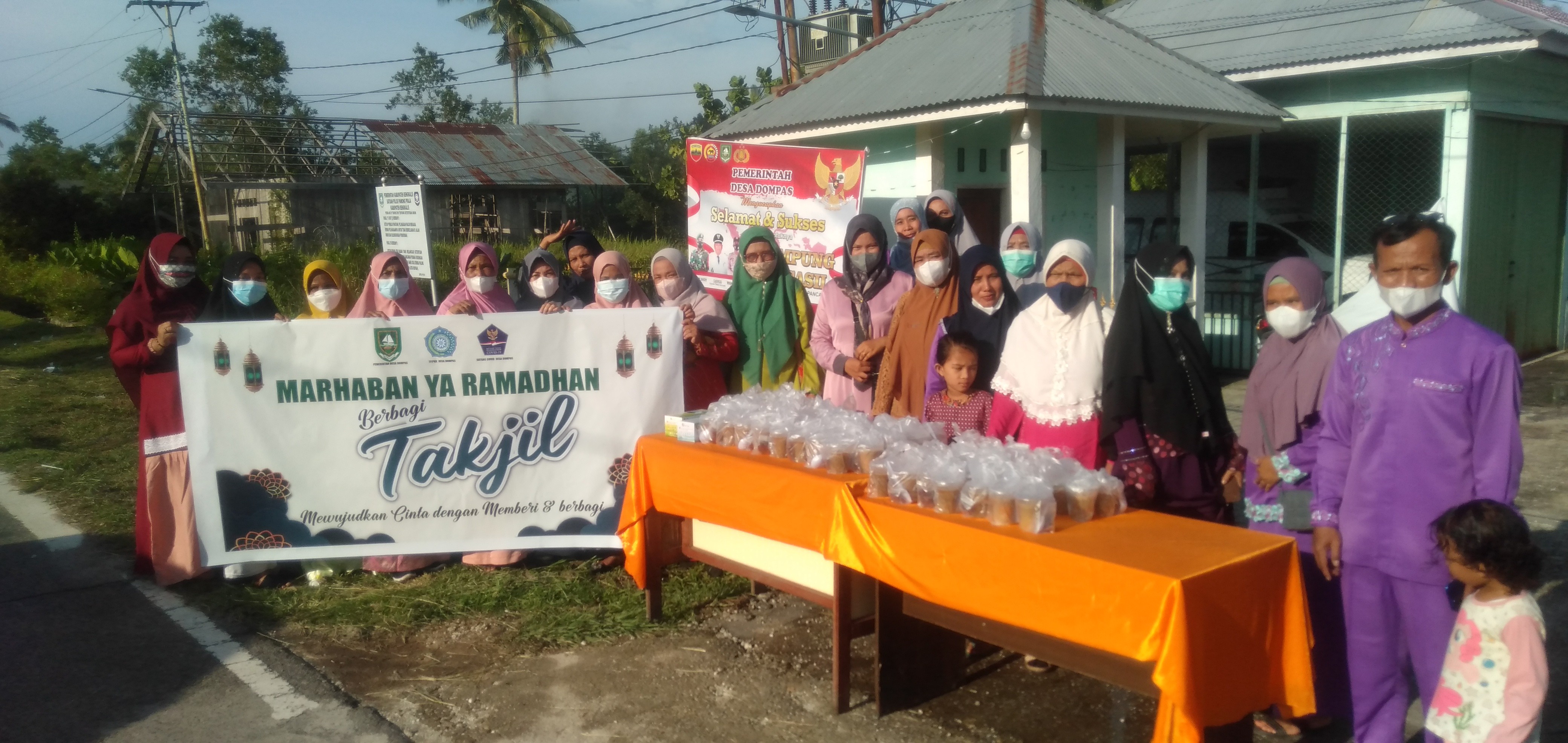 Kepala Desa Dompas Tarmizi melalui Sekretaris (Sekdes) Poniman mengatakan bahwa pembagian takjil dan masker gratis merupakan salah satu bentuk rasa kepedulian Pemerintahan terhadap warga didalam bulan suci ini.