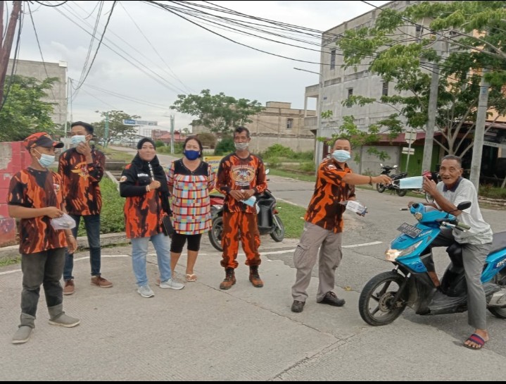 Keterangan Gambar : Terlihat Ranting PP Sungai Selari sedang membagikan masker gratis ke pengendara
