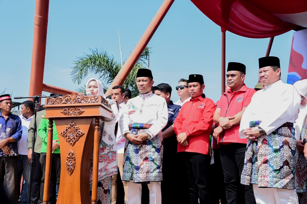Dihadapan ribuan masyarakat, terlebih dahulu Kasmarni mengucapkan terima kasih kepada 11 parpol yang telah mendukungnya maju kembali dalam kontestasi demokrasi di Kabupaten Bengkalis.