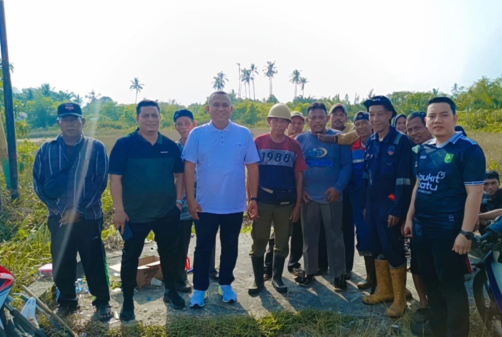 Keterangan Gambar : Camat Acil Esyno foto bersama Lurah Sungai Pakning dan Kades Pangkalan Jambi Novri Jefrika beserta para Warga.
