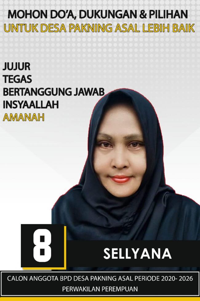 Salah satu calon yang ikut berkompetisi dalam pemilihan tersebut adalah Sellyana dengan Nomor Urut 8 wanita kelahiran 27 Februari 1978 ini siap maju dan mengabdi di Desa Pakning Asal, kecamatan Bukit Batu, Kabupaten Bengkalis.